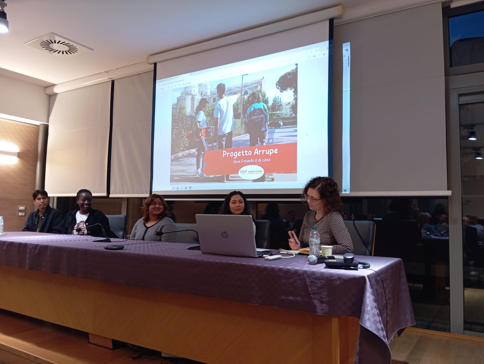 The programme opened with institutional greetings from the Collegio Mazza delivered by Mirco Paoletto, General Director, followed by an overview of the project presented by Francesca Palmieri from Popoli Insieme. The core moment of the event, Let them speak, gave space to several students from the Arrupe Project, who shared their experiences of coexistence and integration through both video testimonies and live contributions. Their stories highlighted the depth and complexity of the journey and the importance of the support network developed around the project.